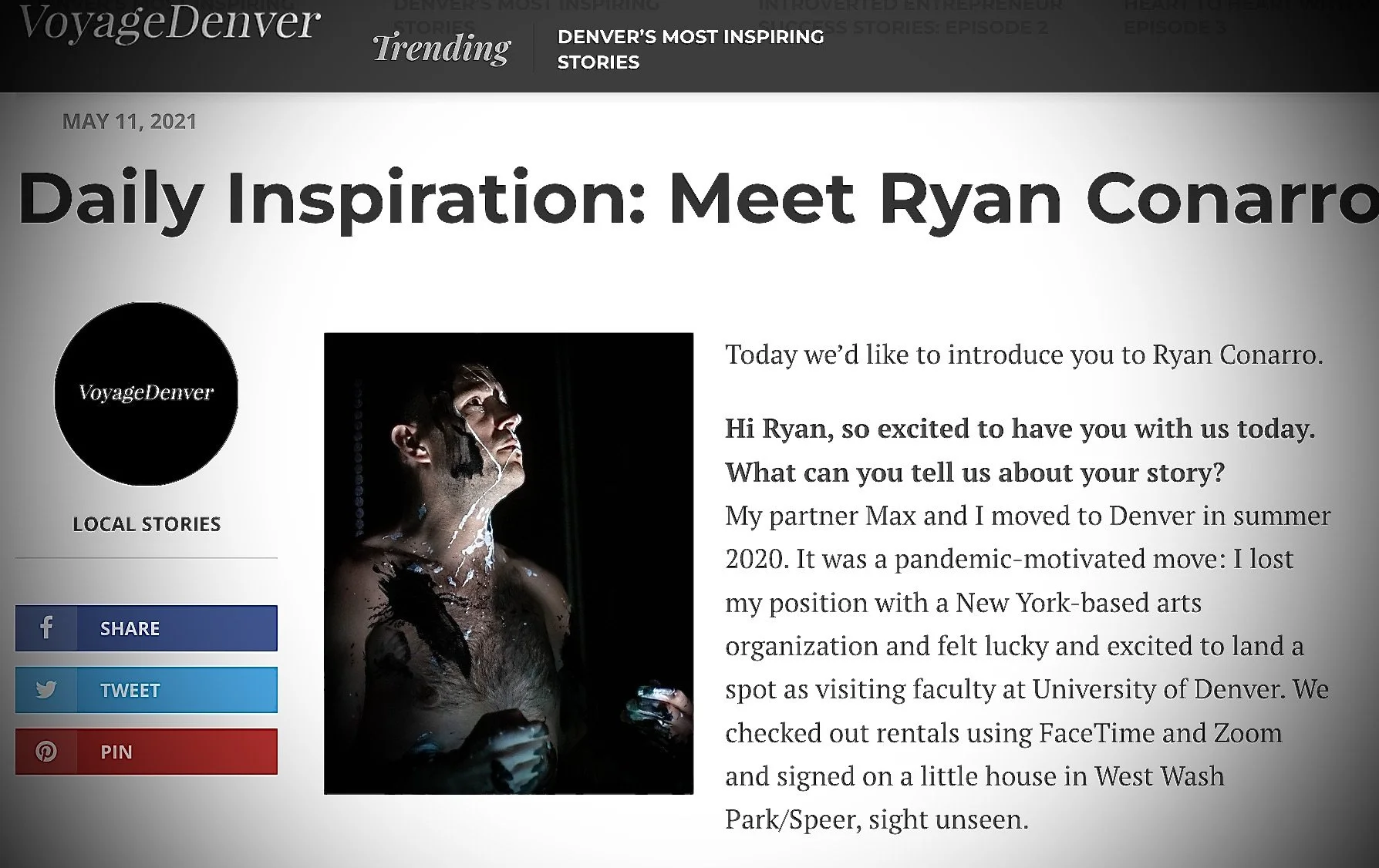 In conjunction with Saints of Failure, Ryan’s original, site-specific performance work at Denver’s Historic Grant Avenue Church, Voyage Denver featured Ryan in a May 2021 artist talk & interview.